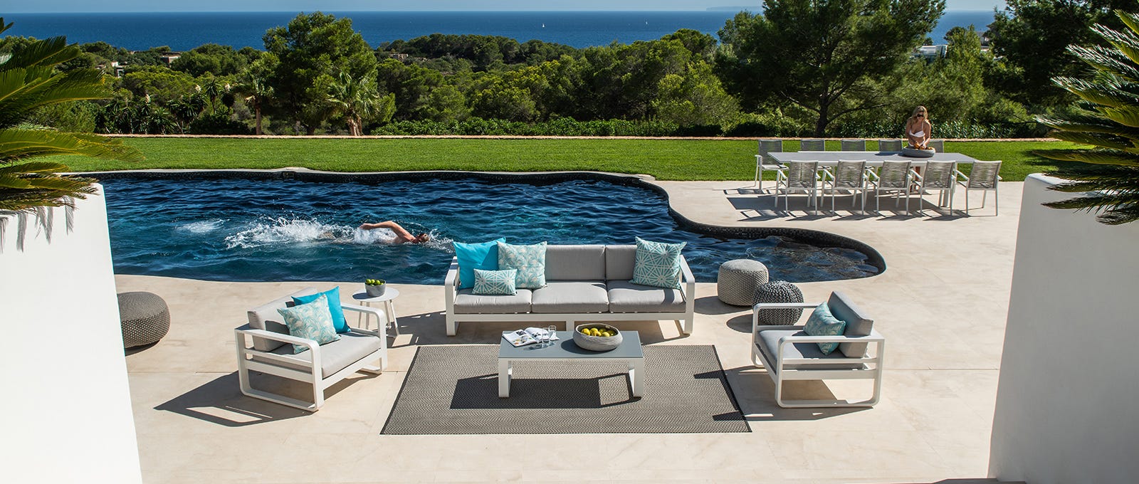 Mokum Tropicalia by Catherine Martin is Teflon coated making it the perfect fabric for outdoor poolside entertaining.