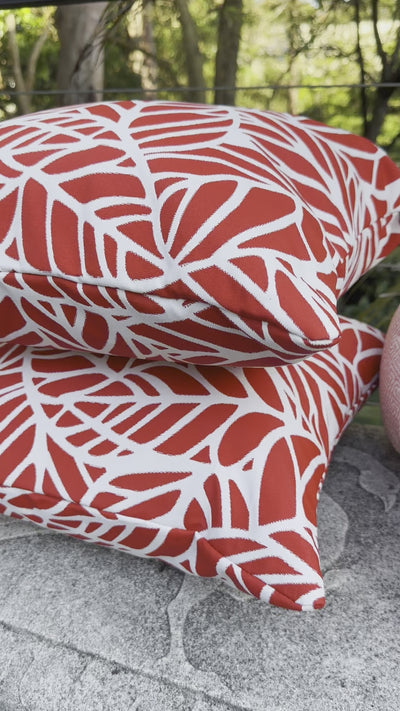 Exciting new season colours in uplifting and energetic alfresco red, perfect for outdoor decor, bright, fun outdoor cushion for lounge settings, daybeds and poolside cabanas.
